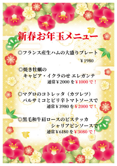 ☆ 期間限定 新春お年玉メニュー 1月6日より (売り切れ御免にてご提供)