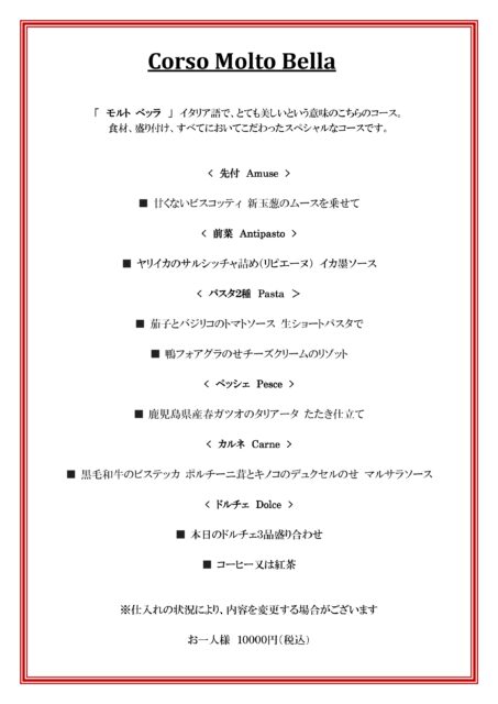 ☆ 当店のスペシャリティ「Molto Bella モルトベッラ コース」¥10000 1~2月の期間限定コースです。