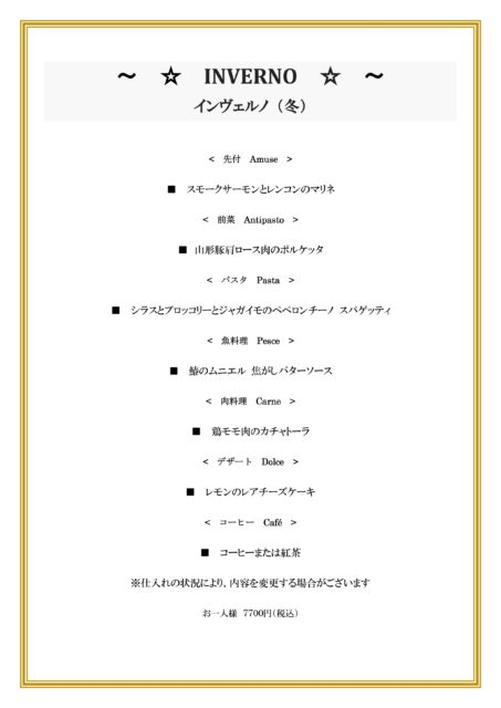 (ランチコースは当面据え置きとさせていただきます。)
