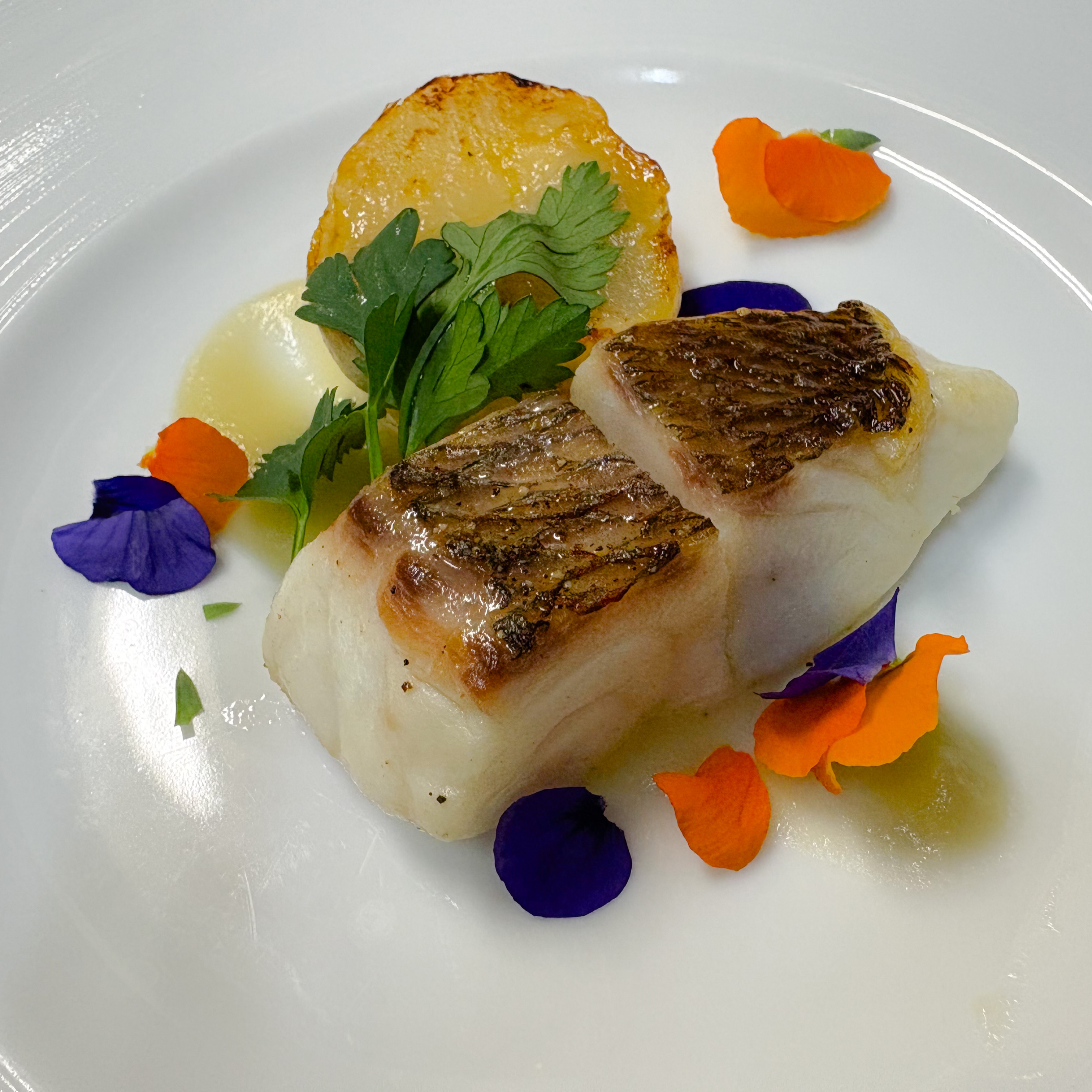 ■ 真鯛のポワレと蕪のロースト 新玉葱のソース