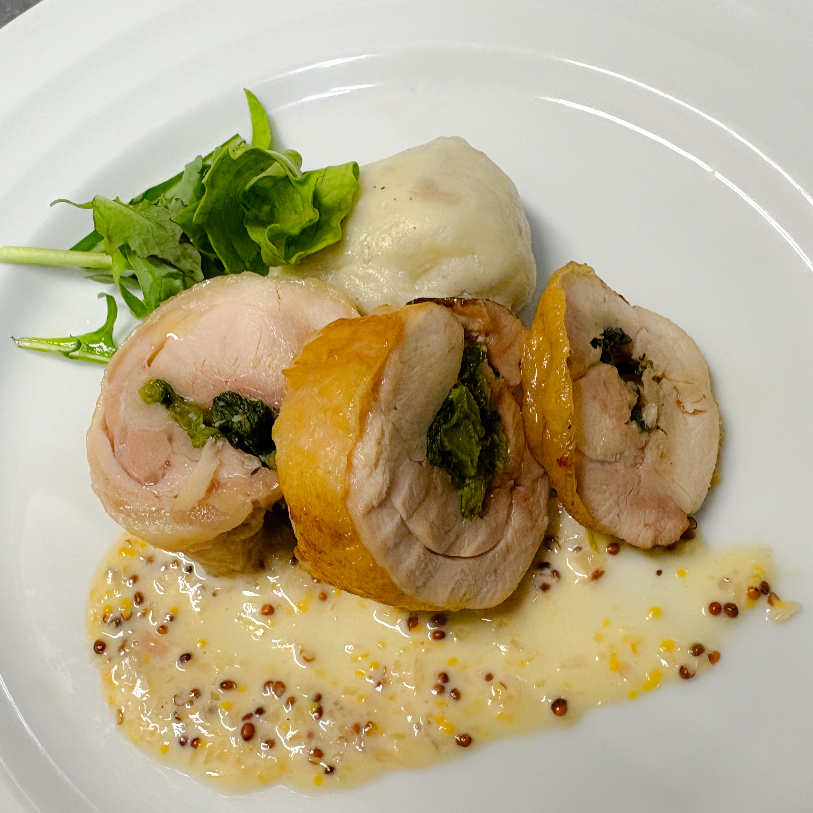 ■ 大山鶏と菜の花のインボルティーニ 粒マスタードソース